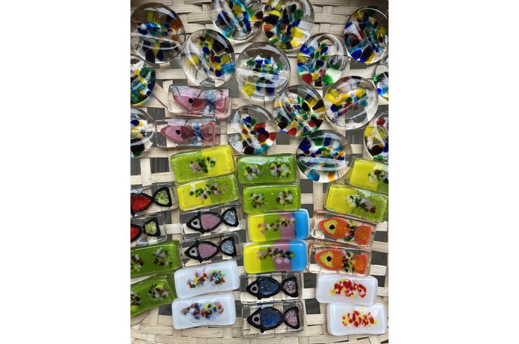 2022/06/25こんにちは 沖縄の買い付けから戻りました^_^ 沖縄は着いた途端に梅雨明けで、戻ってきたら東京が猛暑、、、猛暑を追いかけているわ田です。 さて沖縄から、おはじきのようなガラスの箸置きを買い付けてきました^_^ -