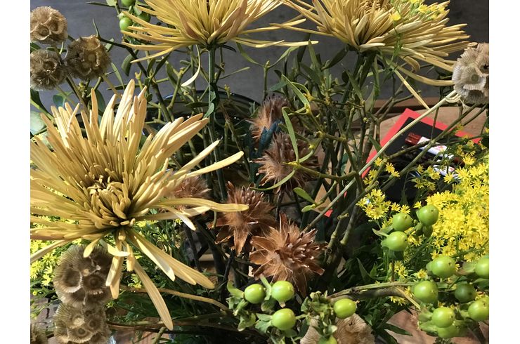 年末感、お正月ムードをイメージして華やかなイエロー系のお花を。
