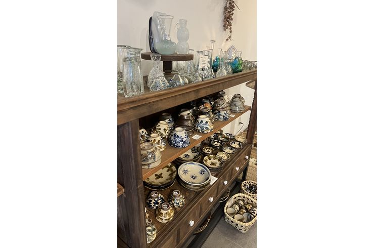 店内は全てこの日の為に、買い付け&オーダー&納品いただいた新着のやちむんと琉球ガラスでうめつくされむした!