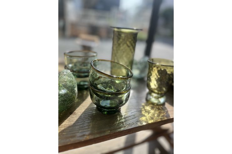 平岩さんのスタッキンググラスの新色。浅葱の口巻き。