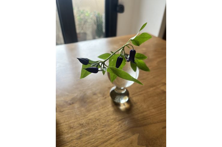 (↑ベランダ栽培のクレマチスの花が咲いたので摘んで、ガラスの花器はまもなく独立されるガラス職人の試作品。どちらも自分との関わり合いの中から連れてきた掛け替えのない存在)