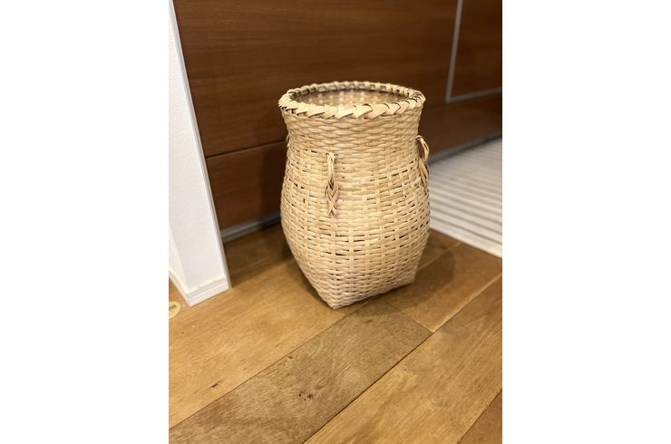 我が家のごみ箱は、リビングでは沖縄の大き目の魚籠(ビク)を、洗面所では青森の根曲がり竹の筒形のカゴを使っています。ゴミ箱にするなんてなんてもったいない!という方もおられるかもしれませんが、見た目も美しくゴミ箱に見えないですし、ごみ回収の度に軽くて触り心地が良くて、毎回のごみ回収がルンルンです。完璧に我が家の暮らしを楽しくしてくれていますのでまったくもったいなくなんてないです!こういう言い方は下衆ですが元は取れています!