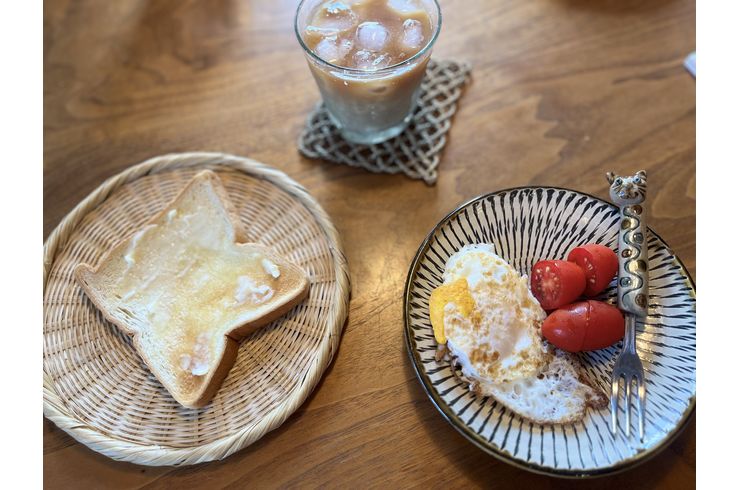 卵料理と簡単な葉野菜もしくはトマト、トーストというパターンが多いです。それに夏場は決まってアイスラテ。