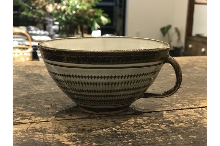 小石原焼 鬼丸豊喜窯の刷毛目のスープカップです。