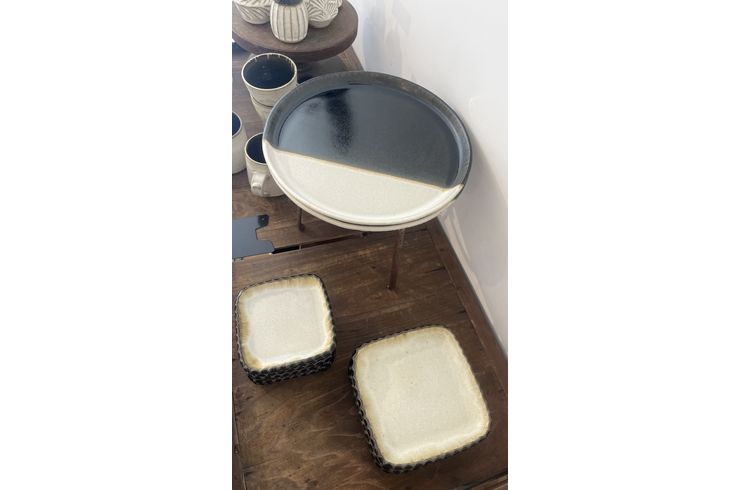 マットな釉薬と石炭釉の掛けわけシリーズです!
