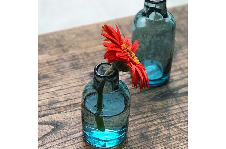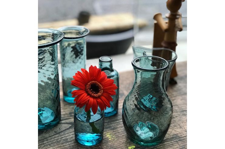 「浅葱」色のフラワーベースは大小さまざま
