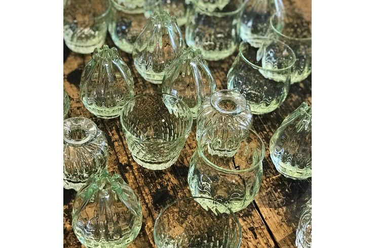 2018/11/30皆さま こんにちは こちらのガラスは茨城県笠間市でひとりで制作されている山口起恵さんの、一輪挿しです。 山口さんの作るガラスは、ジャムの瓶やジュースの瓶を再生利用した再生ガラスです。 -