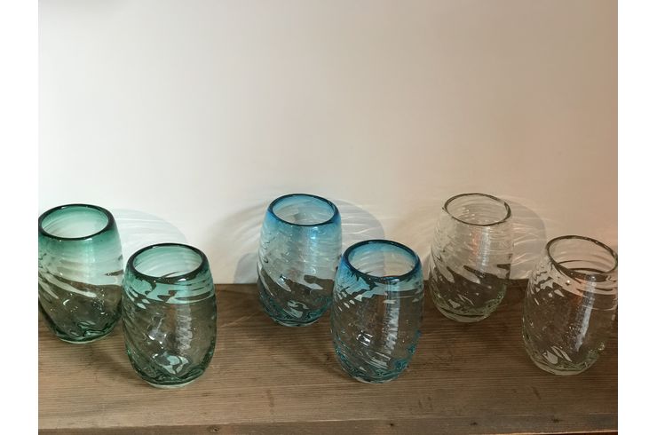 再生ガラス中村一也さんの吹きガラスがお店に並びました