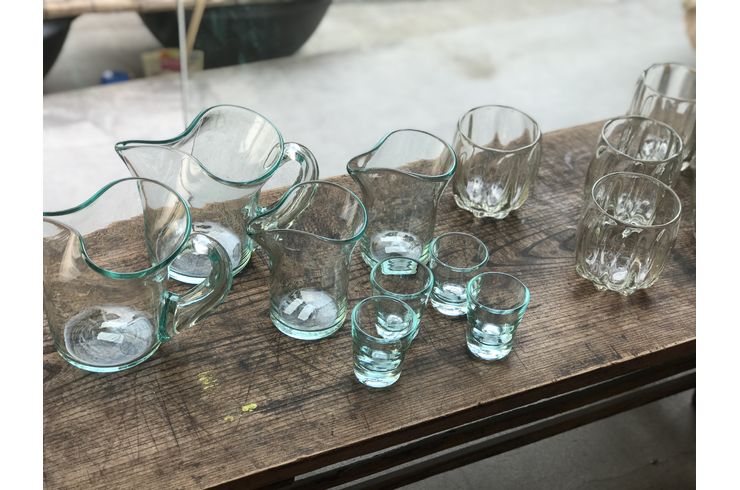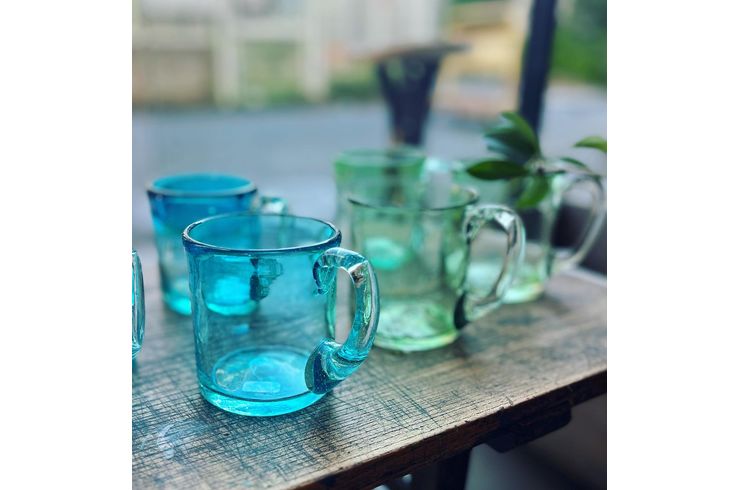 廃棄されたガラスを原料としてあたたかみのある手作りのガラス製品があらたに命を宿します。