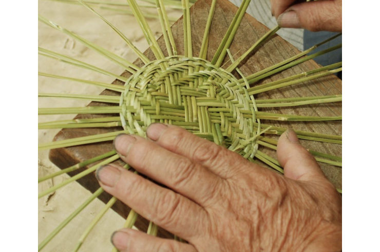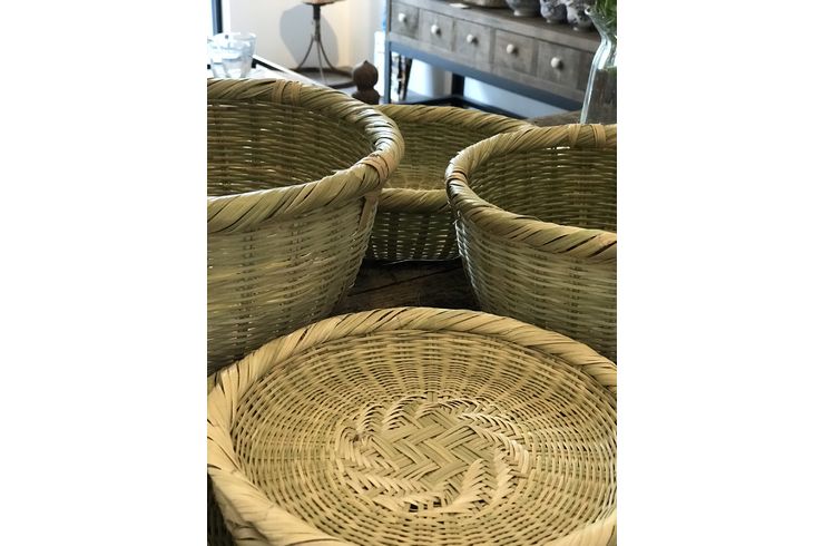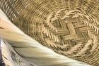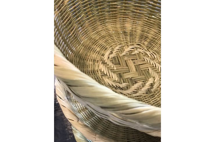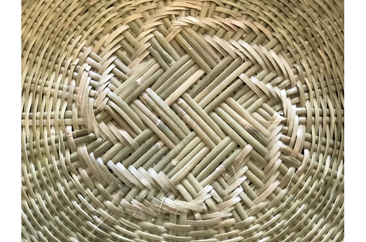 この地方で作られるざるは底に特徴があります。 「あじろ編み」と呼ばれる伝統編みでクロス掛けしたその模様はどの角度から見ても美しく強度があります。まさに「用の美」です。